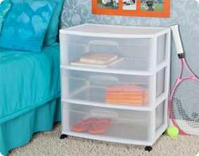 Need extra storage space in your dorm room? The 3 Drawer Wide Cart is a great solution for sweatshirts, towels or even shoes!